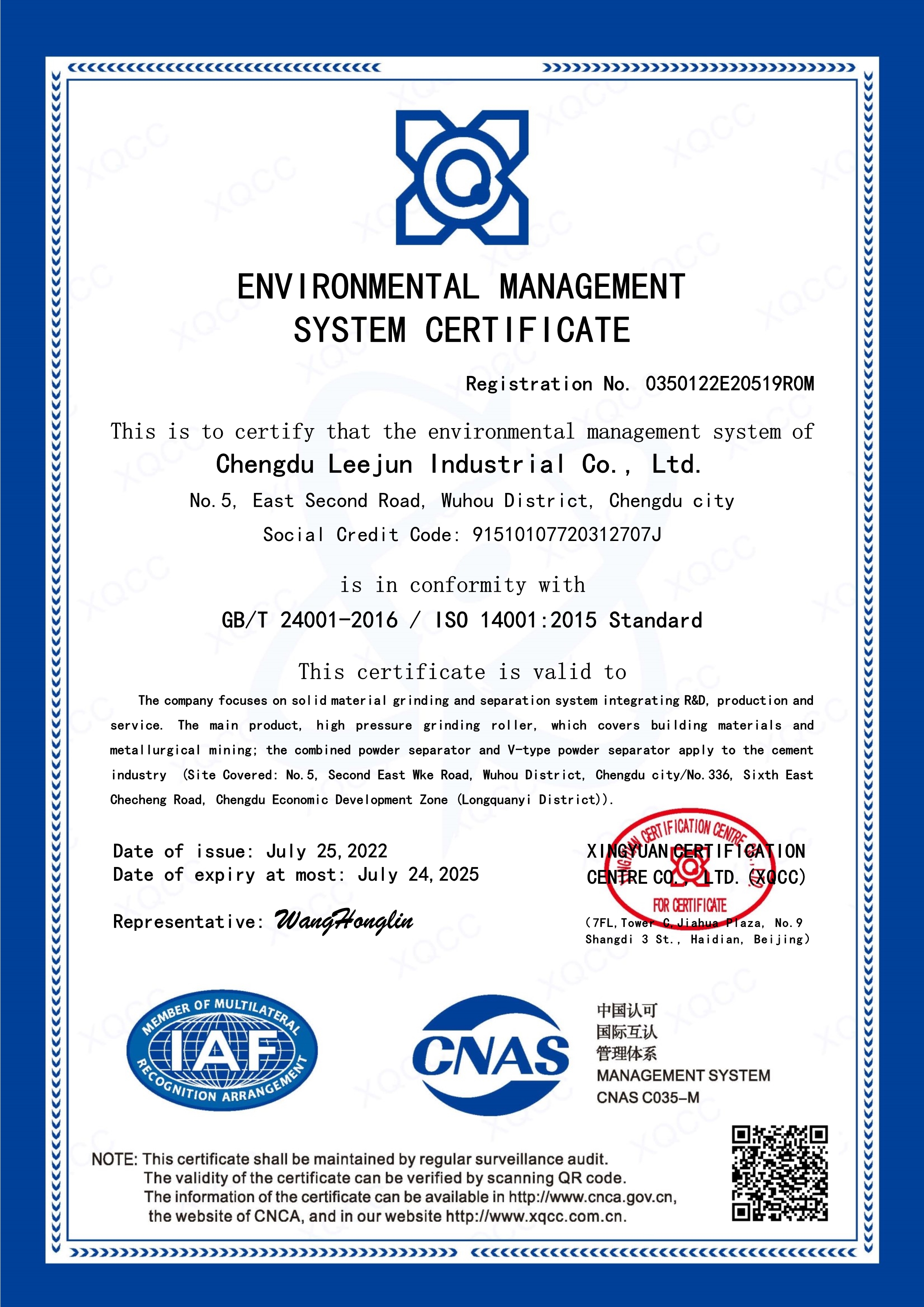 公司通過了ISO9001質(zhì)量管理體系、IOS14001環(huán)境管理體系和CE認(rèn)證,積極推行全面質(zhì)量管理。先后獲得了“中國建材機(jī)械工業(yè)企業(yè)信用評(píng)價(jià)AAA級(jí)”、“四川省質(zhì)量管理先進(jìn)企業(yè)”、“四川省建設(shè)創(chuàng)新型企業(yè)”、“四川省質(zhì)量信用AAA用戶”等多項(xiàng)榮譽(yù)和資質(zhì)證書。