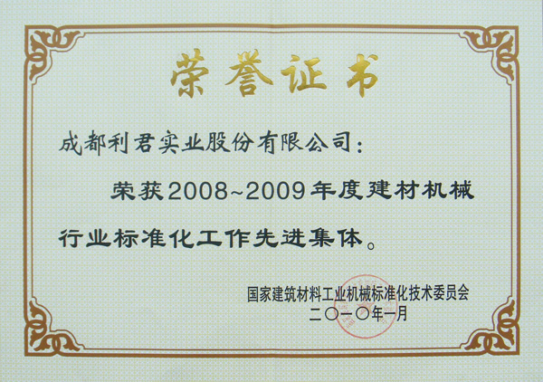 2010年1月17日至1月20在浙江省紹興市召開(kāi)了“2010年建材機(jī)械標(biāo)準(zhǔn)化工作會(huì)議”,本次會(huì)議由第一屆全國(guó)建材裝備標(biāo)準(zhǔn)化技術(shù)委員會(huì)與第四屆國(guó)家建筑材料工業(yè)機(jī)械標(biāo)準(zhǔn)化技術(shù)委員會(huì)主辦,來(lái)自全國(guó)98家單位的116位代表參加了會(huì)議,包括合肥院、天津院、南京院、成都院、洛礦、川礦等單位的人員參加了會(huì)議。成都利君實(shí)業(yè)股份有限公司被吸收為會(huì)員單位,公司副總經(jīng)理、總工程徐智平任標(biāo)委會(huì)委員。由于參與了“建材工業(yè)用耐磨件堆焊通用技術(shù)條件”標(biāo)準(zhǔn)的制定,公司榮獲2008—2009年度建材機(jī)械行業(yè)標(biāo)準(zhǔn)化工作先進(jìn)集體。